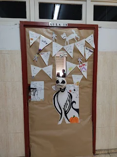 Los alumnos de 1º, 2º,y 3º de ESO participaron en la decoración de las puertas de sus respectivas aulas con motivos de Halloween. Todos colaboraron de una manera espontánea, plasmando sus obras con una creatividad sorprendente. Los temas que eligieron los profesores y profesoras de inglés para esta actividad están relacionados con la noche de Halloween - cementerios, murciélagos, esqueletos, vampiros, calabazas.